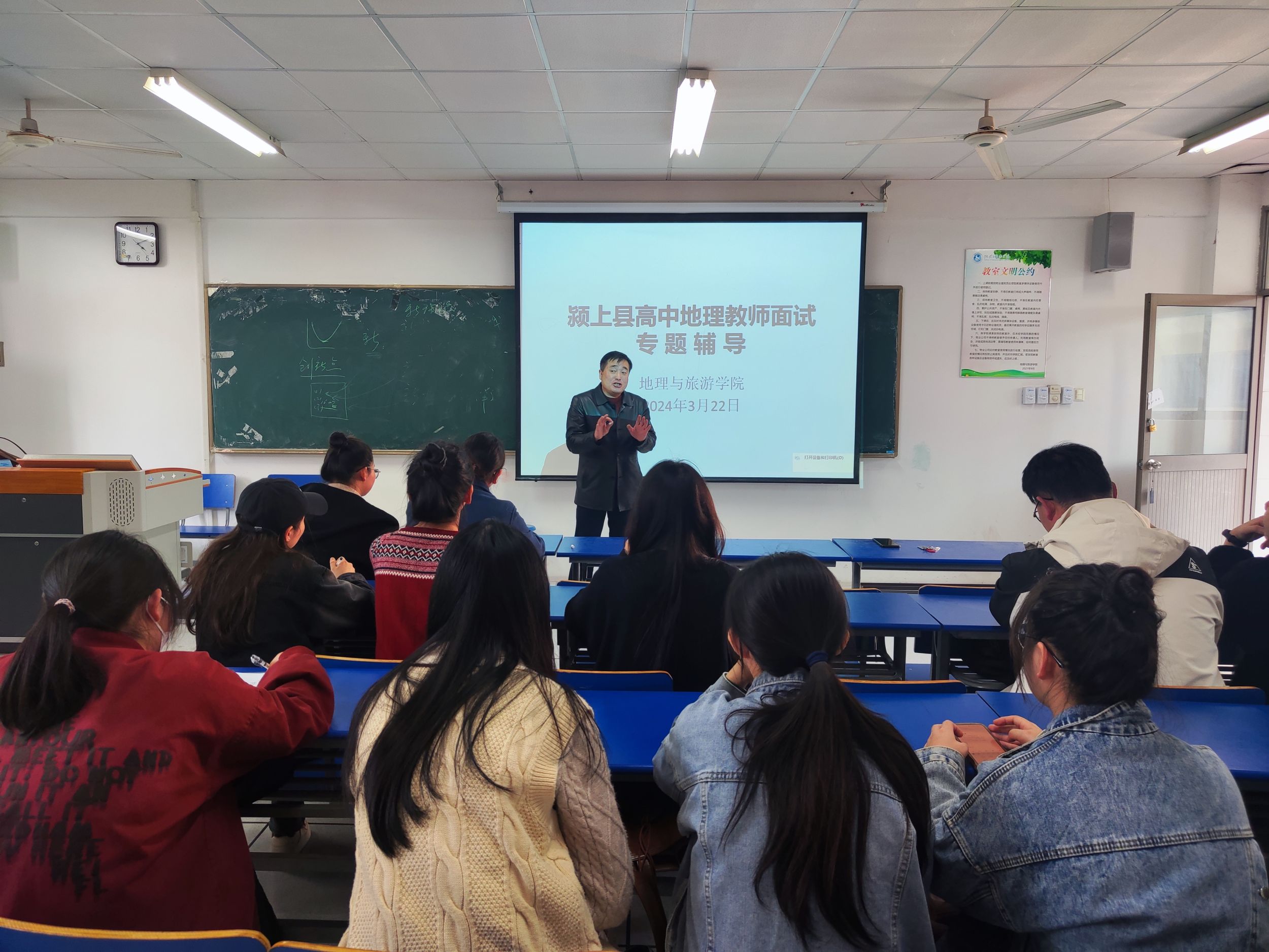 为帮助毕业生更好地掌握求职面试技巧,提高求职面试成功率,3月22日下午,地旅学院举行教师面试专题辅导,为拟参加颍上县高中地理教师面试的同学们进行指导。
