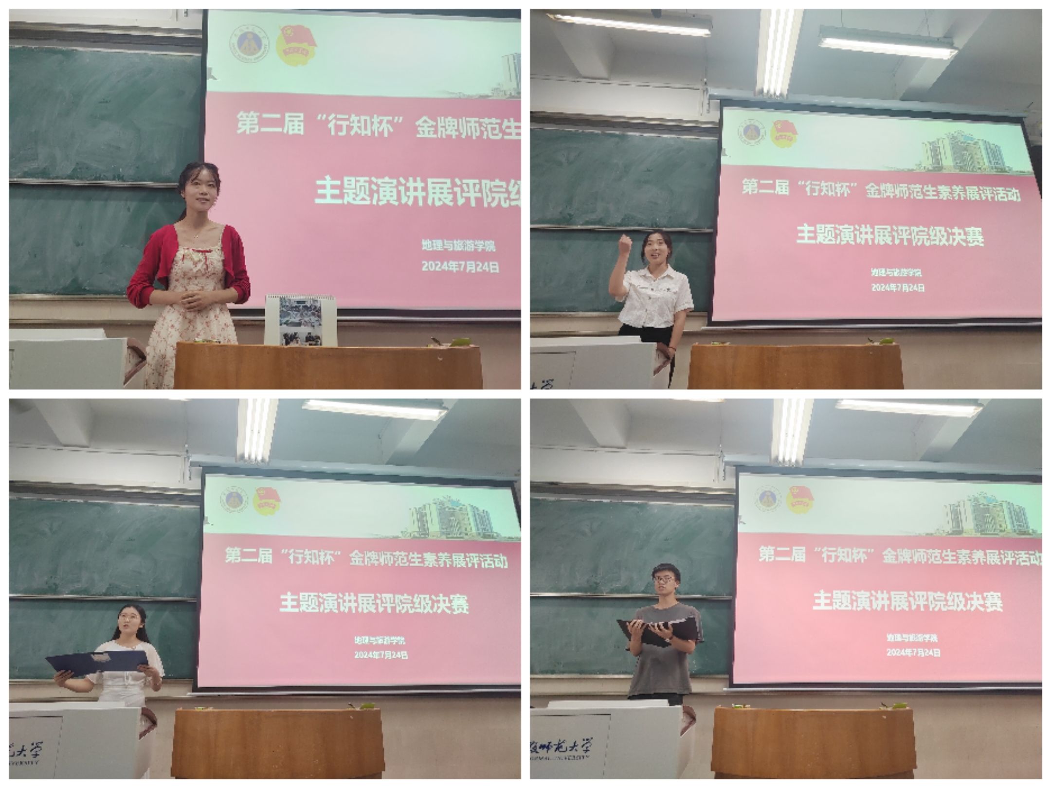 为深入学习宣传贯彻党的二十大精神,积极推进“三大行动计划”,落实地理师范专业暑期小学期“三金”工程,提升地理师范生教学实践能力和就业本领。7月24日下午,8858cc永利唯一官网在校团委的指导和支持下,顺利举办第二届“行知杯”金牌师范生素养展评活动院级决赛。“小学期”特聘教授淮南市第一中学姜静静、合肥市第一中学许传宝、淮南市第二中学胡静担任评委,决赛分为主题演讲、教学板书、模拟授课、教学教案展评四个项目,分别进行。