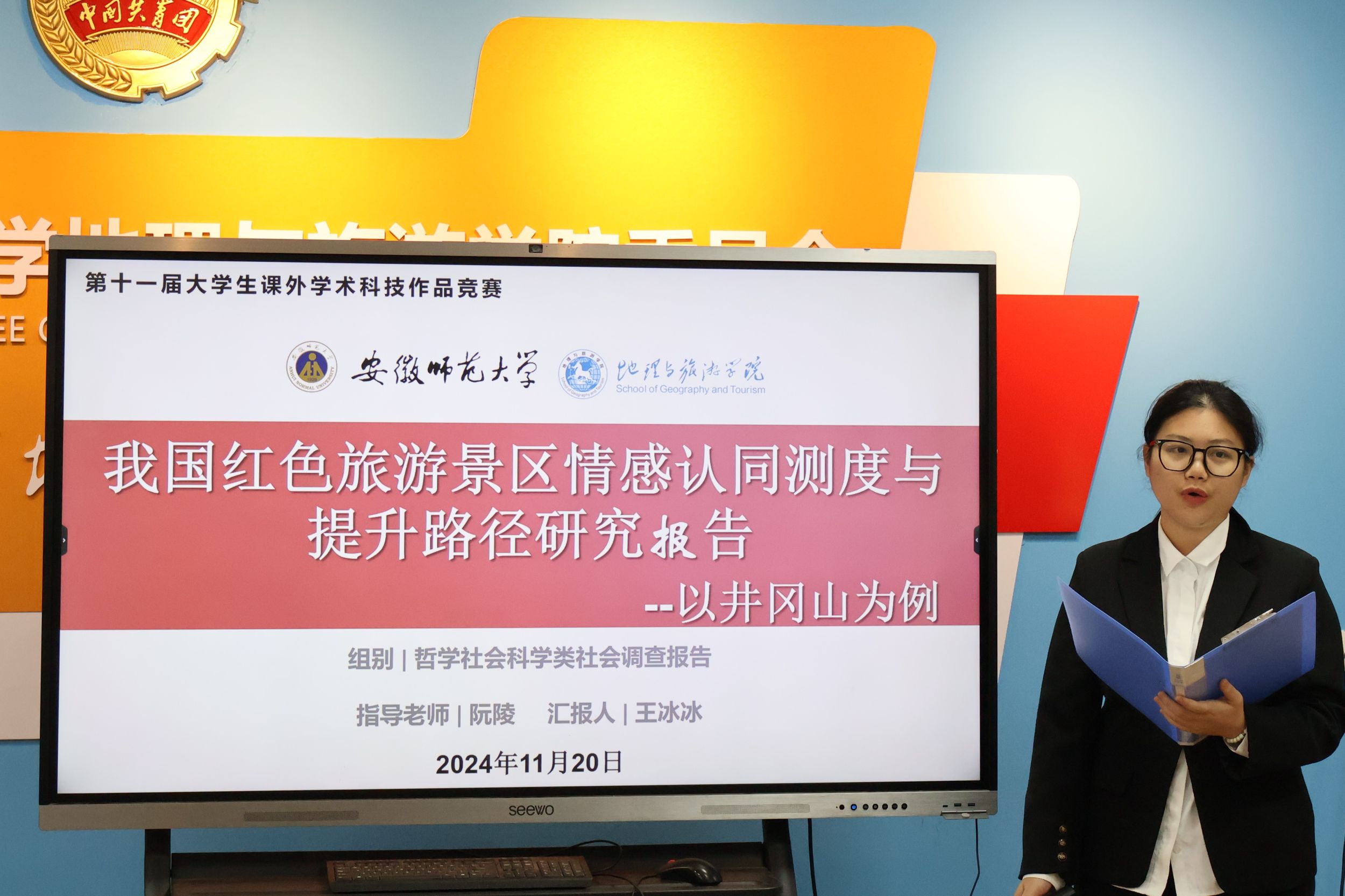 在本次评选活动现场,共有33支参赛团队入选展评环节。其中“旅‘课’天下”项目团队通过对安徽师范大学旅游管理专业不同年级的本科学生进行相关问卷调查,为更进一步发展旅游管理学科提出有效建议;“我国红色旅游景区情感认同测度与提升路径研究报告——以井冈山为例”团队采用线上线下结合、宏观微观结合、定性定量结合等多种方式,以井冈山为对象,由外到内深度挖掘了红色旅游的意义与价值;“数字技术引领农业转型,智慧农业助力高质量发展”团队通过实地调研,分析现实困境,提出要“科学规划,精准施策”的建议;“智翼绿藻”无人机控藻红壤樟叶凝絮技术团队通过分析行业痛点与抑藻传统方法的缺点,创新利用无人机技术对绿藻进行均匀且高效的雾化器喷洒……团队各具特色,研究成果颇丰。