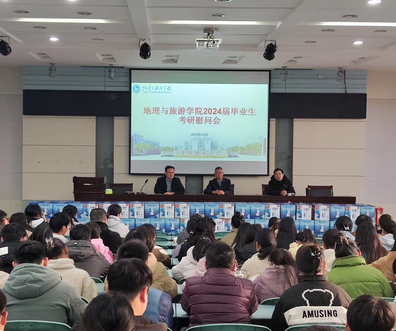 本网讯(刘思圻 邵宇萌)12月6日,地旅学院在实验楼101报告厅召开2024届毕业生考研慰问会。学院党委书记贾冠忠,副院长曹卫东,毕业班辅导员彭媛媛及学院2024届全体考研学生参会。会议由学院党委副书记付勇主持。