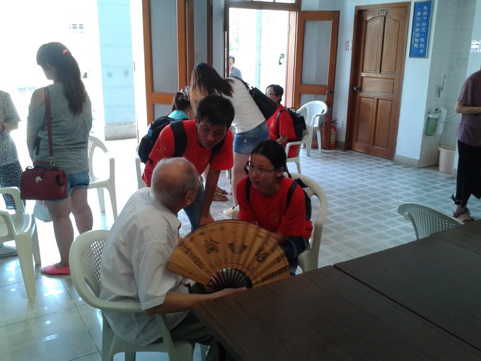 在托老院院长的带领下,志愿者们参观了百合园。与院长的交流中得知,老人们来自各个省市,由于儿女们工作繁忙,将老人寄托于百合园。随后,志愿者们与老人们展开了一系列的交流活动,静谧的百合园充满了欢声笑语。交谈中,据曾经是大学教授的一位老人透露:百合园至今仍有一位老奶奶穿着毛主席时代的衣服,并且将自己的工资用来帮助需要的人。还有一位百岁奶奶,在与志愿者的谈话中,提出了她对当代大学生的期望,她希望当代大学生将来能够做国家有用之人,朋友之间要相互学习,不怕穷,不怕没有知识,但一定要努力。志愿者的到来勾起了老人们年轻时的记忆,每位老人的脸上都洋溢着灿烂的笑容。临走之际,百岁奶奶仍不忘提醒志愿者要做国家有用之人。