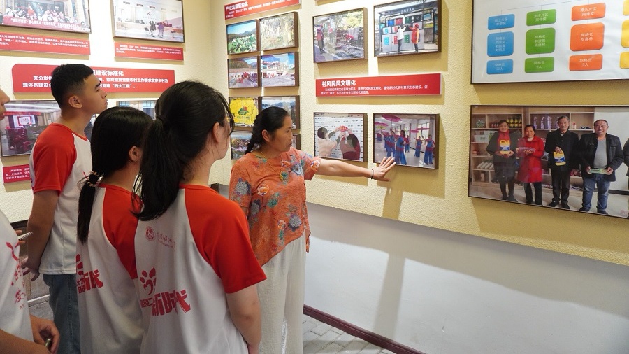 茅店村不仅是一片浸润着深厚红色文化的热土,而且具有古色古香的传统建筑。茅店村依托红色资源,挖掘红色文化,传承红色基因,打造红色名村,发展红色旅游,促进乡村振兴。村里精心修缮了老红军周岐故居,布置了老红军事迹展览厅;设立了茅店村史馆、民俗文化馆和廉政文化教育基地,推出了“党建 红色旅游”模式,将红色主题和元素融入村庄整治和美丽乡村建设。其中调研团队重点参观了周岐故居,随着故居管理者的逐一讲解,队员们深刻认识到了革命先辈的艰辛不易,红军长征的困难重重与坚强意志。茅店村依托新时代文明实践站,以家风家训为切入点,打造万龙山乡茅店村红色文化家风馆实践基地,以图文并茂的形式,宣传继承重耕读、重族谊、明廉耻,重自立、重修养、明节俭等优秀家风家训,为乡村治理新画卷添上浓墨重彩的一笔。