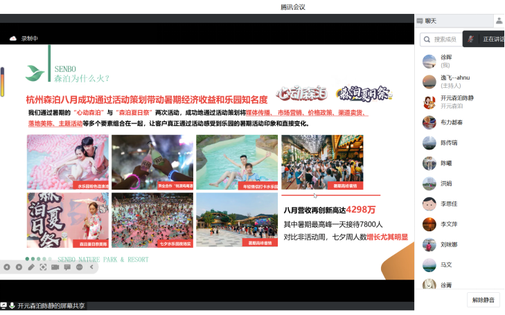 陈静对个人经历以及酒店相关情况进行了简单的介绍,杭州开元森泊度假酒店以“大自然”为原点,创新衍生出“精品度假”与“奇趣游乐”两大核心板块,是集住宿、游乐、餐饮、商务为一体的全天候一站式休闲度假综合体,并着重讲解了森泊市场营销案例和森泊内部的服务文化两方面内容,揭示了杭州开元森泊爆火背后的原因:开元森泊始终遵行3S服务文化的理念和准则,做到始终保持真诚态度、保持欢乐传递、保持全情投入,给客人提供最好最优的服务。开元森泊一切的工作的开展都是围绕着顾客的体验。