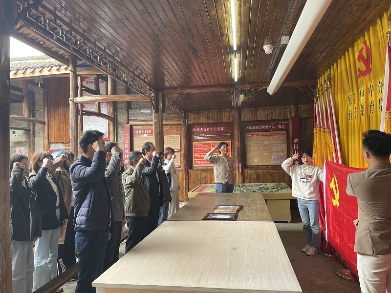 本网讯(地旅学院 吴燕燕 王美)为庆祝中国共产党成立100周年,深入开展党史学习教育,加强党员党性修养、坚定党员理想信念,继承和发扬党的优良传统和作风,近日,8858cc永利唯一官网党委书记贾冠忠、党委副书记乔静、党委委员焦华富、各支部书记及支委前往繁昌县中分村新四军三支队司令部旧址进行党史教育学习活动。