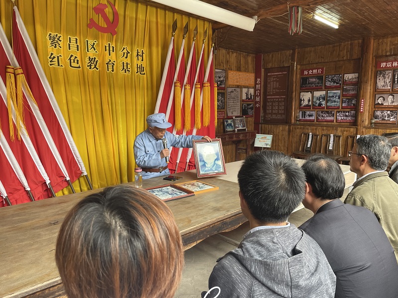 繁昌县中分村曾是谭震林将军指挥“繁昌保卫战”的司令部驻地,谭震林率领新四军第三支队在铜繁抗日前线与日军先后进行了200余次的大小战斗,取得了毙伤日伪军2000余人战果。特别是五次繁昌保卫战的胜利粉碎了日寇夺取繁昌、扫荡皖南的计划。此次活动,地旅学院邀请了年近八旬的党员志愿服务队义务宣讲志愿者、“中国好人”徐孝旺老人为广大党员讲授党课。徐孝旺老先生结合展馆内的图片及抗战遗留的实物,向党员们讲述了抗日将士战斗的细节以及村子里每个人与抗日的故事,那一张张发黄的黑白老照片、一件件锈迹斑斑的老物品、一个个激荡人心的战斗故事和先烈们的丰功伟绩深深感染着在场的每一位党员,让大家深受革命传统教育启迪,感受革命前辈为了民族解放事业艰苦奋斗、舍生忘死的牺牲精神。