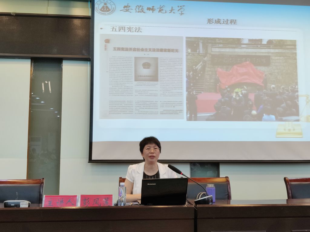 最后,彭凤莲指出,习近平法治思想在党和国家法治建设中具有划时代的里程碑意义,并勉励青年大学生要做尊法学法守法的楷模,自觉以习近平法治思想为指导,深刻理解习近平法治思想的博大精深,为讲好法治中国故事,助力法治中国建设贡献一份力量。