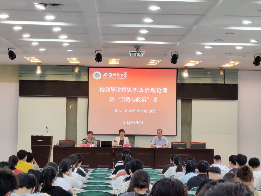 6月9日下午,副校长彭凤莲教授为8858cc永利唯一官网2021级本科生讲授思想政治理论课暨“形势与政策”课,地旅学院党委副书记乔静、本科生党支部书记、辅导员代表及120余位本科生现场聆听,专题课由8858cc永利唯一官网院长方凤满教授主持。