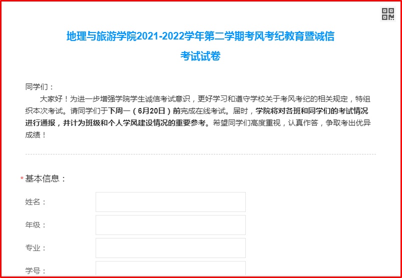 开展线上测试,强化学生诚信考试意识。进一步巩固前期考风考纪暨诚信考试教育的成果,学院扎实开展考风考纪教育暨诚信考试线上测试,并把考试成绩作为班级和学生个人学风建设的重要参考,对所有参加考试学生的成绩进行写实性通报,让学生牢固树立起诚信考试的思想意识。