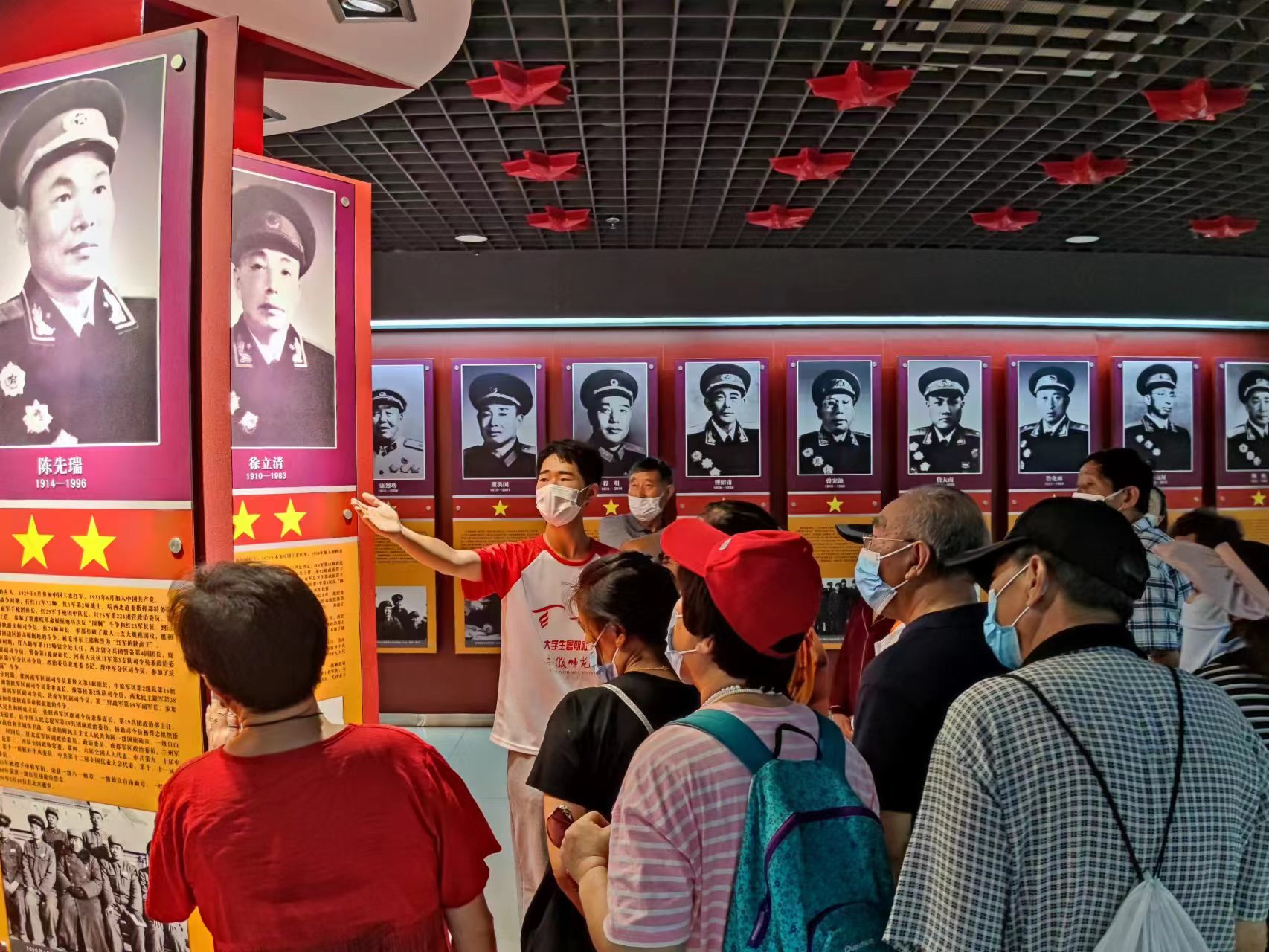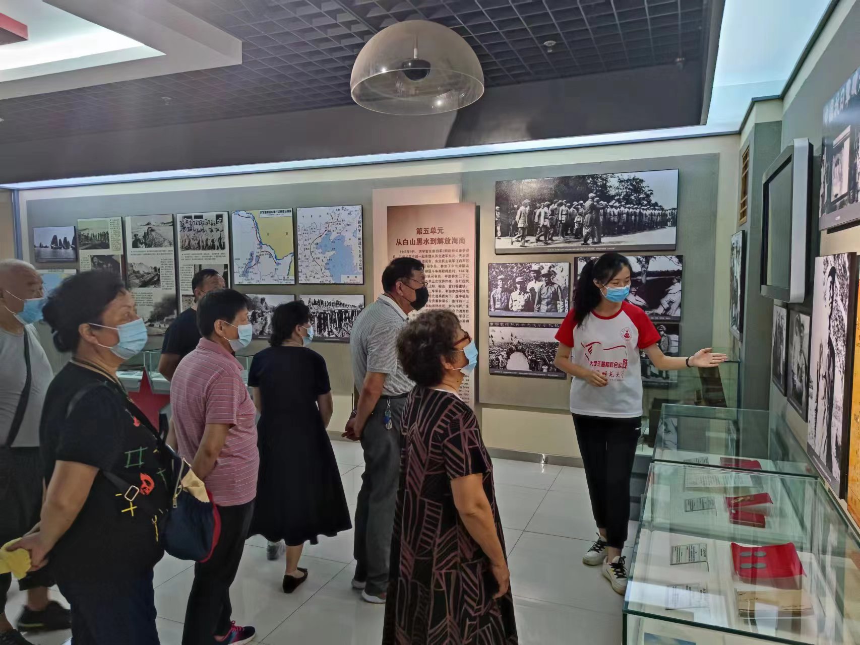 短短的一周时间内,志愿者们通过观摩专业讲解、馆长培训指导、模拟讲解训练等方式进行讲解培训。他们白天在馆内一遍遍模仿着讲解员进行模拟训练;晚上在房间加练背稿子。万余字的讲解词,3天时间背熟;熟记场馆内的陈列,准确指出所讲解内容的位置,训练走位和仪态……志愿者们学会的不光是如何做一名合格的讲解员,更重要的是深刻了解金寨革命先烈用献血诉说的故事。