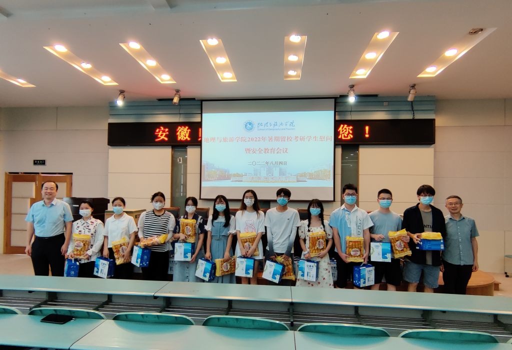 近日,地旅学院在实验楼101报告厅召开2022年暑假中期留校考研学生慰问暨安全教育会议。学院党委书记贾冠忠、院党委副书记乔静、2019级本科生辅导员以及全体暑期留校考研学生参会。