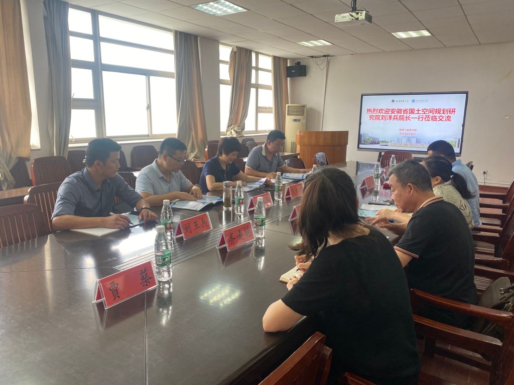 刘洋兵院长介绍了安徽省国土空间规划研究院的基本情况,高度称赞了地旅学院在科学研究、实验室平台建设、学生培养等方面的成就,高度评价了地旅学院同安徽省国土空间规划研究院之间的前期友好合作关系,并展望了安徽省国土空间规划研究院与地旅学院在联合申报高级别实验室、高级别科研项目、促进成果转化、联合培养学生等方面的精诚合作前景。方凤满院长介绍了学院基本情况,希望双方充分整合资源,拓展合作空间,共同提升科研水平,共建实习实践就业基地,服务地方经济,实现双方共同发展、互利共赢。最后,程久苗教授回顾了双方前期的合作基础,并坚信双方合作将取得更多、更有价值的成果。