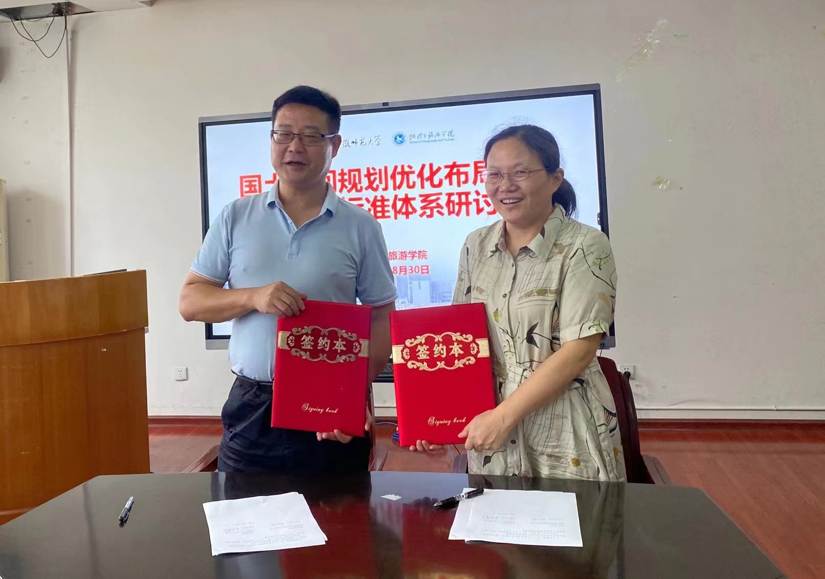 2022年8月30日下午,地旅学院与安徽省国土空间规划研究院产学研合作协议签订仪式在地旅学院三楼会议室举行。安徽省国土空间规划研究院党总支副书记、院长刘洋兵,自然资源部江淮耕地资源保护与生态修复重点实验室常务副主任、正高级工程师张红梅,总体规划部主任王栋,耕地保护部副组长刘王兵,地旅学院院长方凤满教授,程久苗教授,地理信息科学专业教师支俊俊、齐凌艳,土地资源管理专业教师罗遥等出席仪式。仪式由方凤满院长主持。