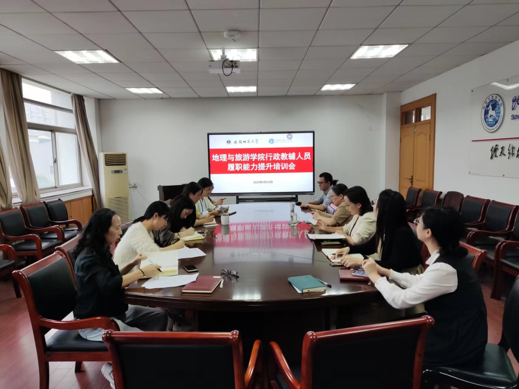 本网讯(地旅学院)9月15日下午,地旅学院举办了行政教辅人员履职能力提升培训会。院长方凤满、行政副院长汪文文、全体在校行政教辅人员参加了培训会,培训会由汪文文主持。