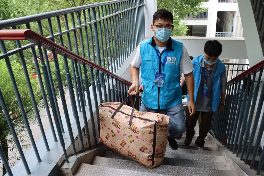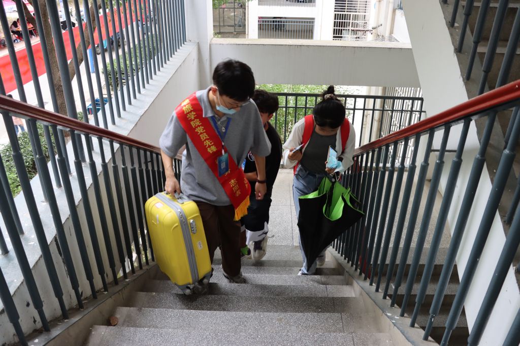 报到当天,冒着淅淅沥沥的小雨,志愿者们早早来到迎新现场进行准备,志愿者们热情洋溢、怀揣爱心,为2022级新生提供最温暖的服务。一个个蓝色的身影奔走于报名点和寝室之间,引导新生报道、搬运行李、为新生指路等,绘就出一幅幅青春洋溢的画面。志愿者用真诚的微笑、热情的服务带给每一位新生归属感,努力减轻他们进入新环境的陌生感新生在志愿者的耐心指引下依次有序地完成报道流程。整个报到现场井然有序,确保了人员不聚集、排队有秩序、报到高效率。