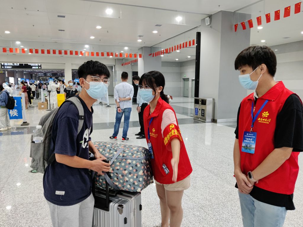 地旅学院组织实施“五微五计划”学生党员先锋领航工程,充分发挥党员模范带头作用,开展火车站接站、快递点搬运行李、学校大门引领伴行、迎新现场答疑解惑等实践服务活动,同时招募组织近150名志愿者分别在报道处、新生寝室、后勤机动、宣传指引等环节进行志愿迎新工作。在迎新现场,志愿者们统一着装,佩戴口罩,积极主动为新生搬运行李、引导路线;学院各部门各司其职,分工合作,在彼此配合下,迎新工作有序进行。