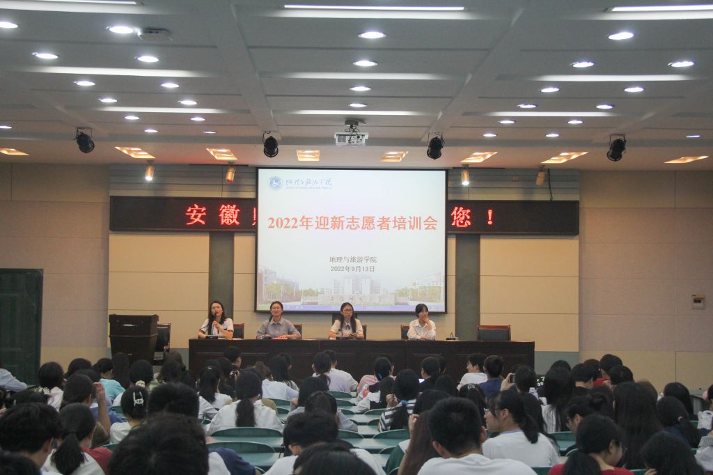913日晚,地旅学院于学院实验楼101教室召开了2022年迎新志愿者培训会。辅导员韦银艳、吴文涵和新生辅导员操晶晶、谢园以及200多名志愿者们参加会议。会上,韦银艳从志愿服务精神、安全纪律、工作态度和文明礼仪四个方面明确了志愿者的工作任务与要求。随后新生辅导员依次发言,着重强调了志愿者要以良好的精神面貌树立好榜样,给新生留下师大及地旅学院的美好印象,让他们对于大学生活充满美好憧憬,同时希望各部门团结协作,共同做好新生接待工作展示地旅学院学子风采