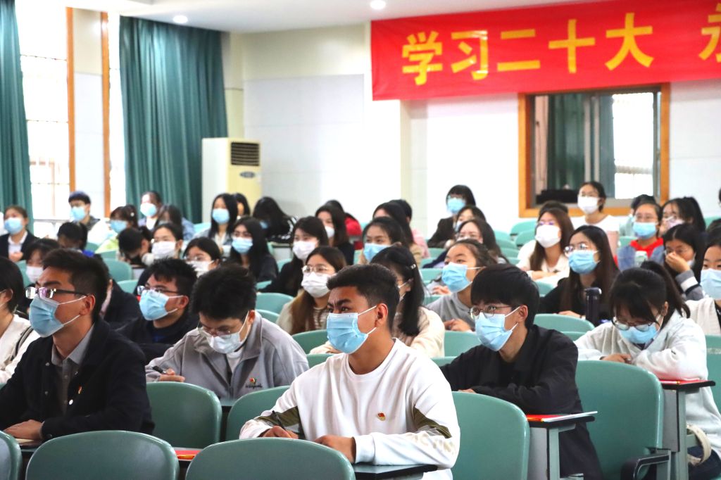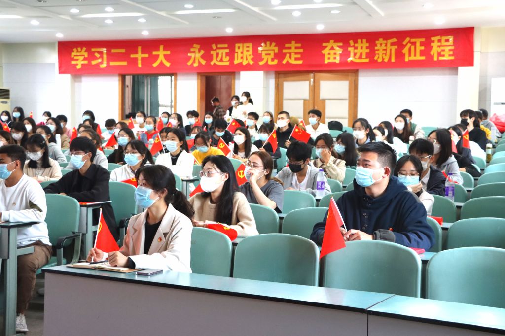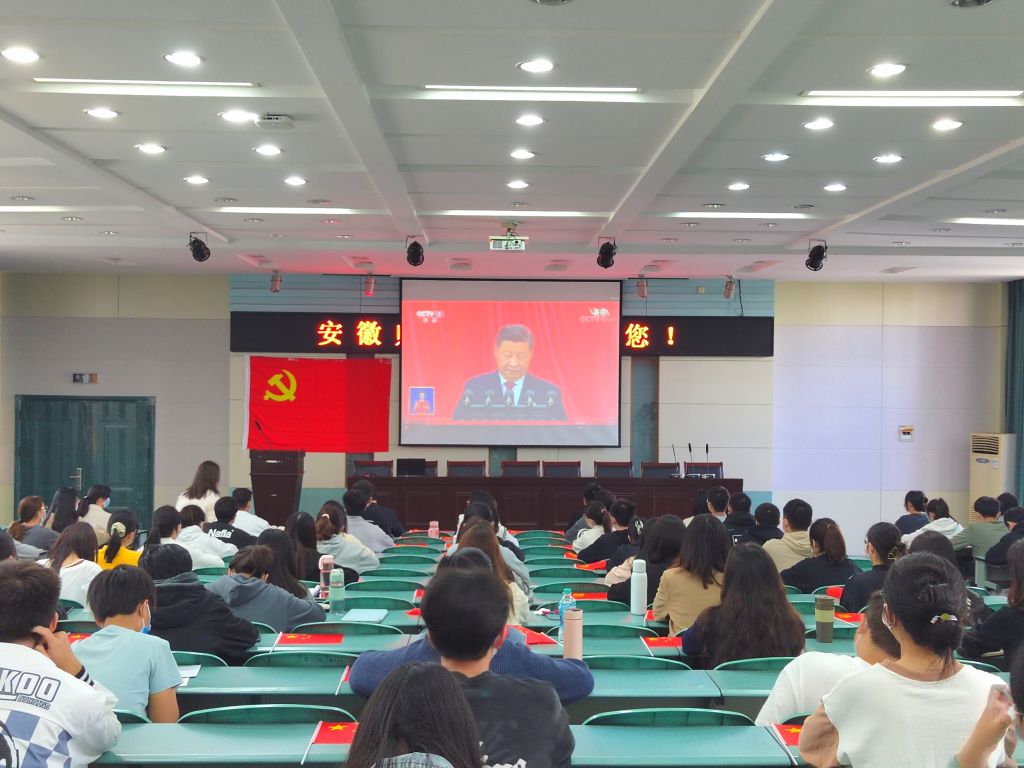 10月16日上午10时,中国共产党第二十次全国代表大会在北京人民大会堂隆重召开,习近平总书记代表第十九届中央委员会向大会作报告。8858cc永利唯一官网积极组织全院师生收听收看大会盛况,热烈庆祝党的二十大胜利召开。学院领导班子、学生党支部书记与学生党员、团员代表在101报告厅集中观看现场直播;教工党支部、各班级团支部分别组织开展线上线下收听收看活动。