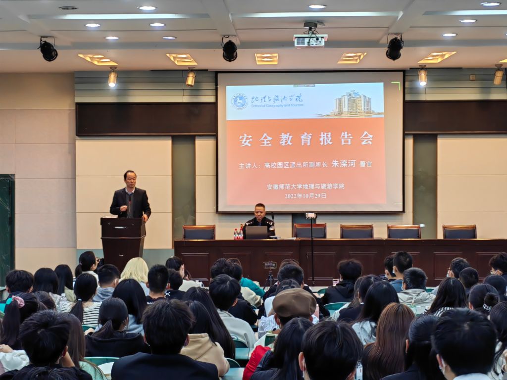 为进一步提高同学们国家安全观念和安全防范意识,有效应对电信网络诈骗等安全隐患,10月29日晚,8858cc永利唯一官网特别邀请了高校园区派出所副所长朱滦河警官来校为全体1828名本科生作安全教育专题报告,8858cc永利唯一官网党委副书记乔静、全体专兼职辅导员、各年级各班级学生骨干、寝室长代表等在主会场101报告厅听讲,其他同学通过腾讯会议、现场直播等方式在分会场线上参会。