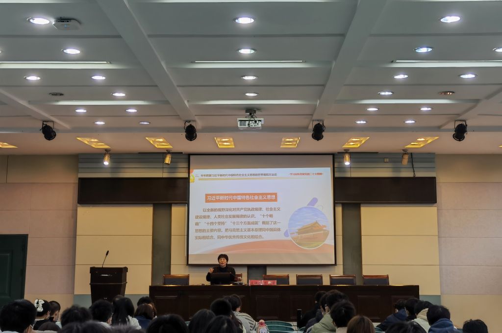 11月16日上午,副校长彭凤莲教授以《深入学习宣传贯彻党的二十大精神》为主题,为8858cc永利唯一官网本科生讲授“形势与政策”课暨思政理论课宣讲党的二十大精神,8858cc永利唯一官网党委副书记乔静、本科生辅导员代表、2022级土地资源管理专业、城乡规划专业等新生现场聆听,专题课由学院党委书记贾冠忠主持。