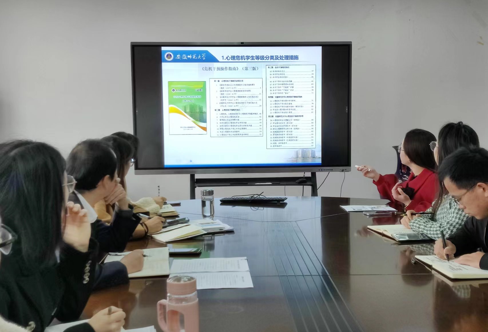 首先,乔静介绍本次专题培训的目的和背景,并对聂余老师前来作报告表示欢迎。接着,聂余做题为《危机干预专题研讨交流》的专题报告,她从心理危机学生等级分类及处理措施、危机干预系统更新事项、心理危机干预注意事项个方面进行讲述。聂余通过丰富的案例,讲解了在面对学生心理问题时的应对方法在日常工作中如何掌握心理健康的调适方法做了深入浅出地指导培训。最后,乔静做会议总结,聂余的精彩报告给予充分肯定并表示感谢,同时希望全体辅导员在日常工作中调适好心理状态,积极为学院深入推进全员心理育人工作贡献力量,把解决学生思想问题、心理问题与解决实际问题结合起来,进一步提升工作实效性。