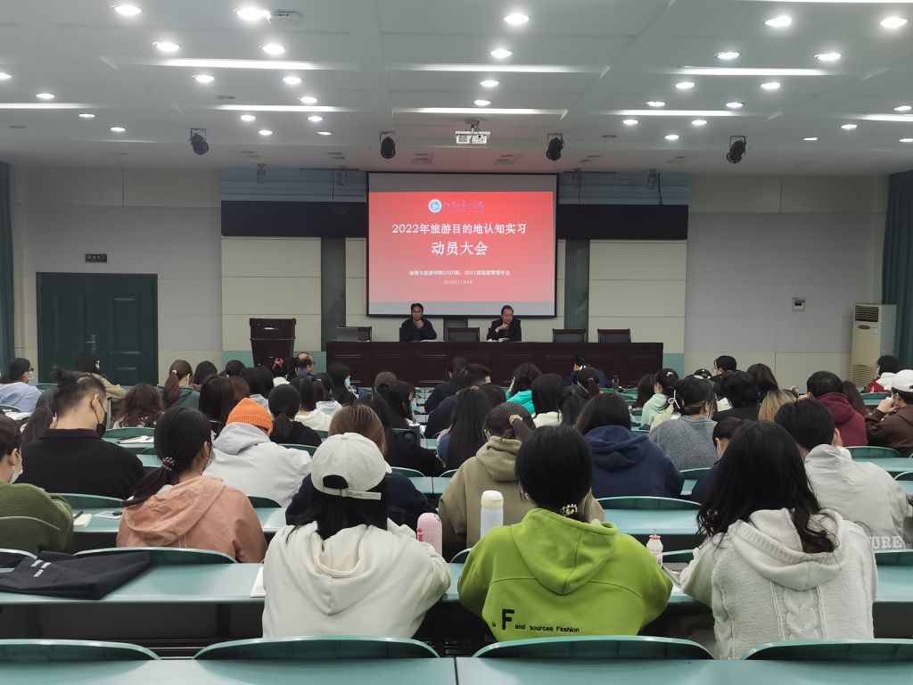 为充分做好实习准备工作,11月4日上午,2020级、2021级旅游管理专业在学院实验楼101报告厅召开2022年旅游目的地实习动员会。学院领导老师们就实习要求、实习目标以及实习行程等方面展开具体论述。实习目标明确、模块丰富、形式多样、安排合理。前期准备工作的落实和动员会的召开,为本次实习的顺利进行奠定了良好基础。