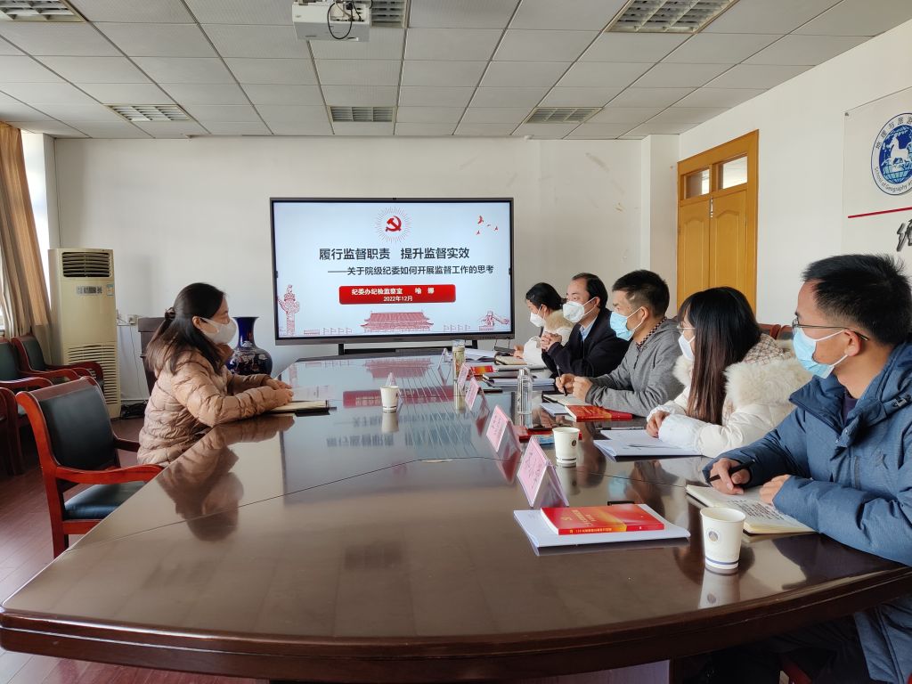 12月14日上午,8858cc永利唯一官网召开纪委工作专题学习培训暨纪委委员会议,校纪委纪检监察室主任喻娜应邀出席会议,为全体纪委委员作题为《履行监督职责 提升监督实效》的专题培训。会议由8858cc永利唯一官网党委副书记、纪委书记乔静主持。