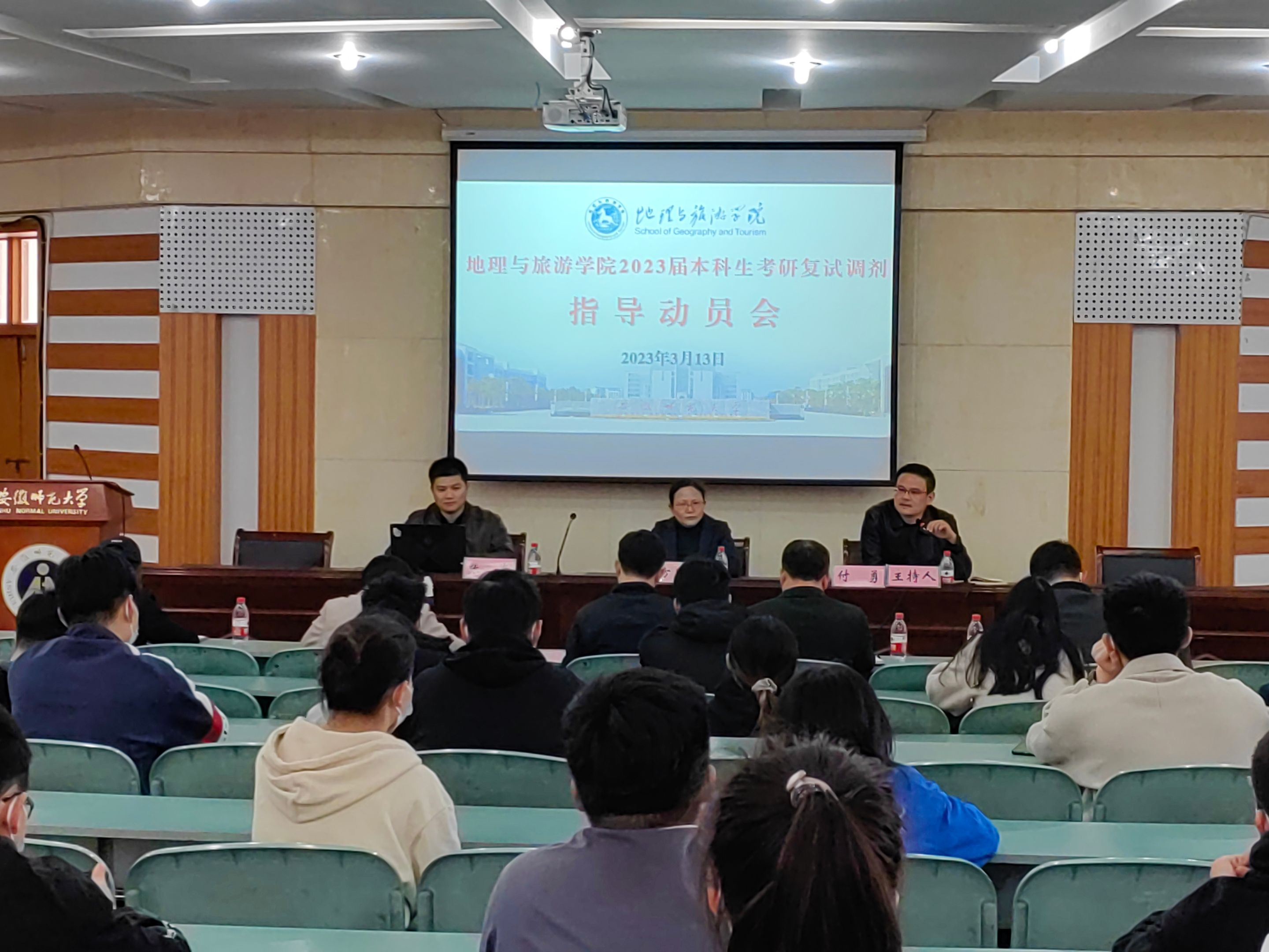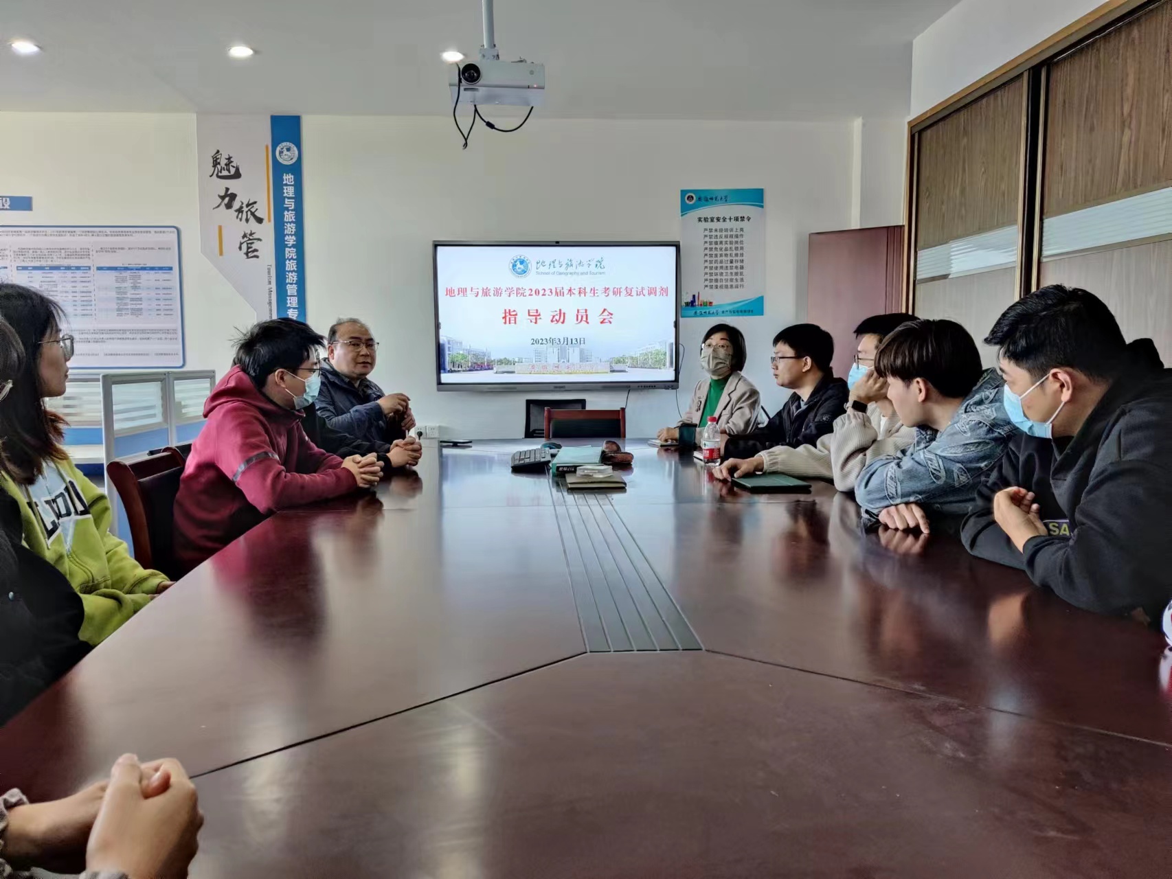 3月13日下午,8858cc永利唯一官网在财务处二楼报告厅召开2023届毕业生考研复试调剂指导动员会。校研究生院招生办公室张崇,地旅学院院长方凤满,各专业负责人及教师代表、2023届毕业班辅导员及考研达线学生参会,会议由学院党委副书记付勇主持。