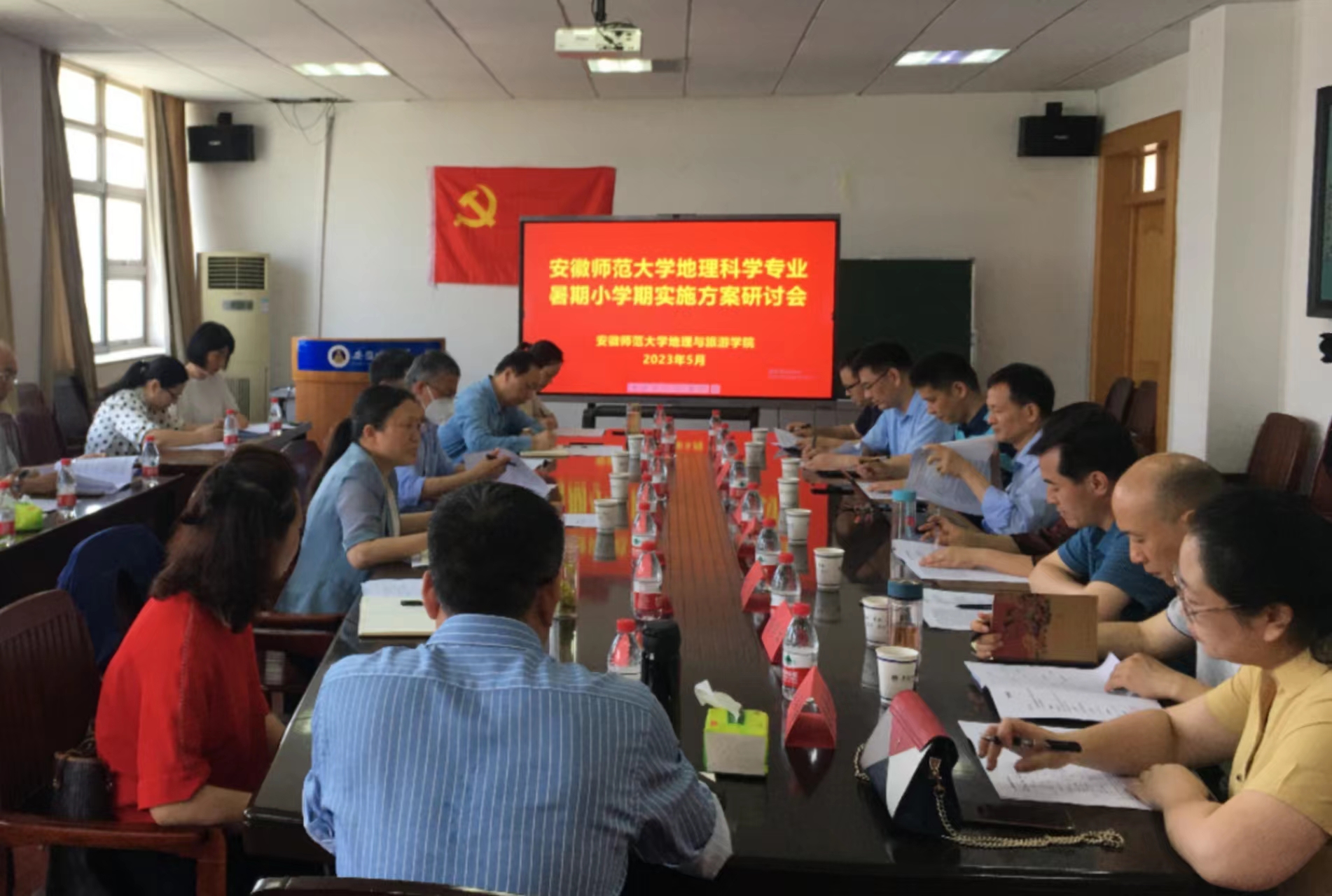 为积极推进“基础教育振兴行动计划”,落实地理科学专业暑期小学期“三金”工程,提升地理师范生教学实践能力,打造安徽师大金牌师范生品牌和优秀师资库等资源,5月28日上午,地理与旅游学院在院行政楼三楼会议室召开安徽师范大学地理科学专业暑期小学期实施方案研讨会。10位中学一线教学名师、校教务处处长崔光磊、地旅学院党委书记贾冠忠、院长方凤满、副院长杨兴柱、曹卫东、地理科学专业负责人朱永恒、教师及辅导员代表等参加了本次会议。