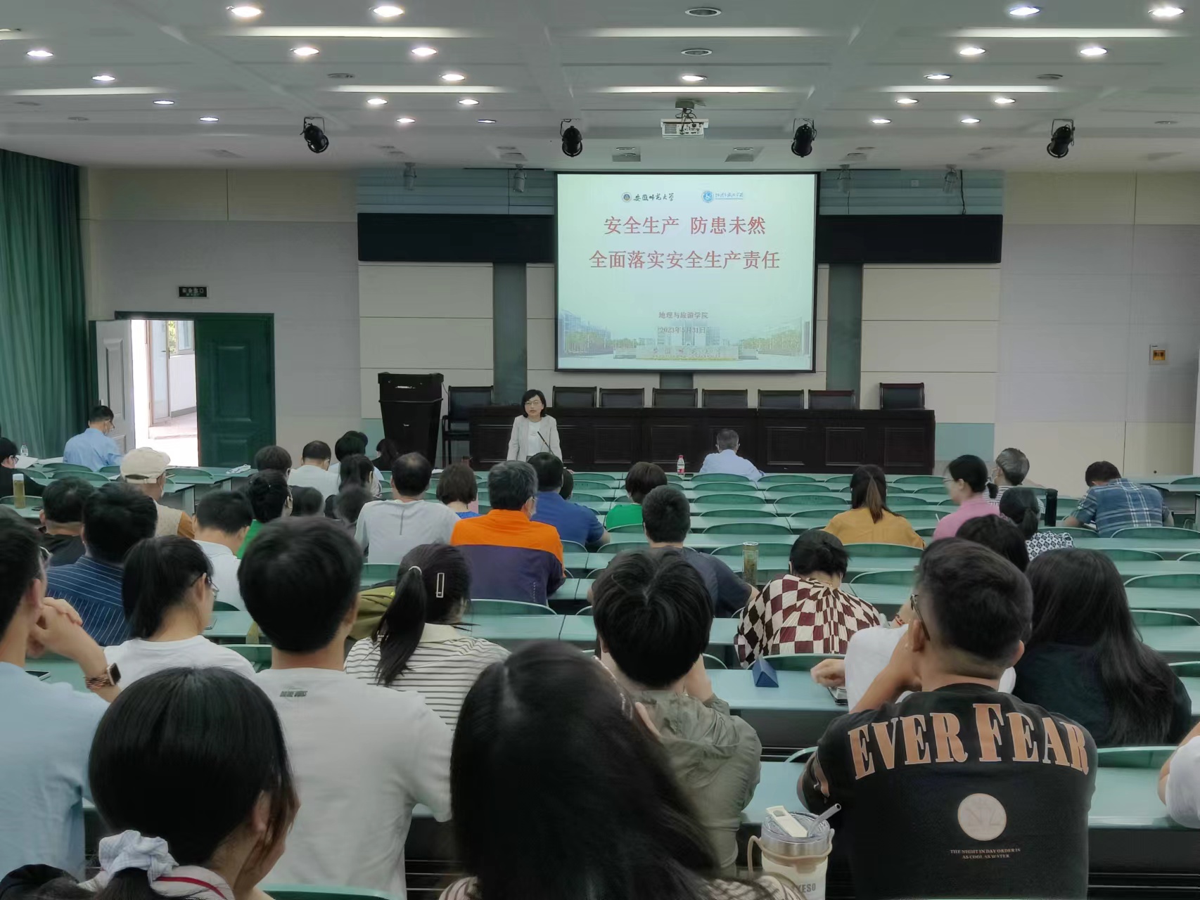 5月31日下午,学院联合校保卫处开展了“安全生产 防患未然”为主题的安全生产培训会。会上,学院向师生发放了《8858cc永利唯一官网实验楼管理制度汇编》等学习材料,行政副院长汪文文传达和领学了学校安全生产工作会议精神和管理规定,重点强调全体师生要牢固树立安全生产“第一责任人”意识,严格遵守实验室、实习实训活动、学生活动等安全管理规定,落实安全隐患排查整治工作,制定相关安全应急处理预案。学院将不定期开展实验室、研究生工作室、学生宿舍安全隐患排查,及时处理违规违纪行为。