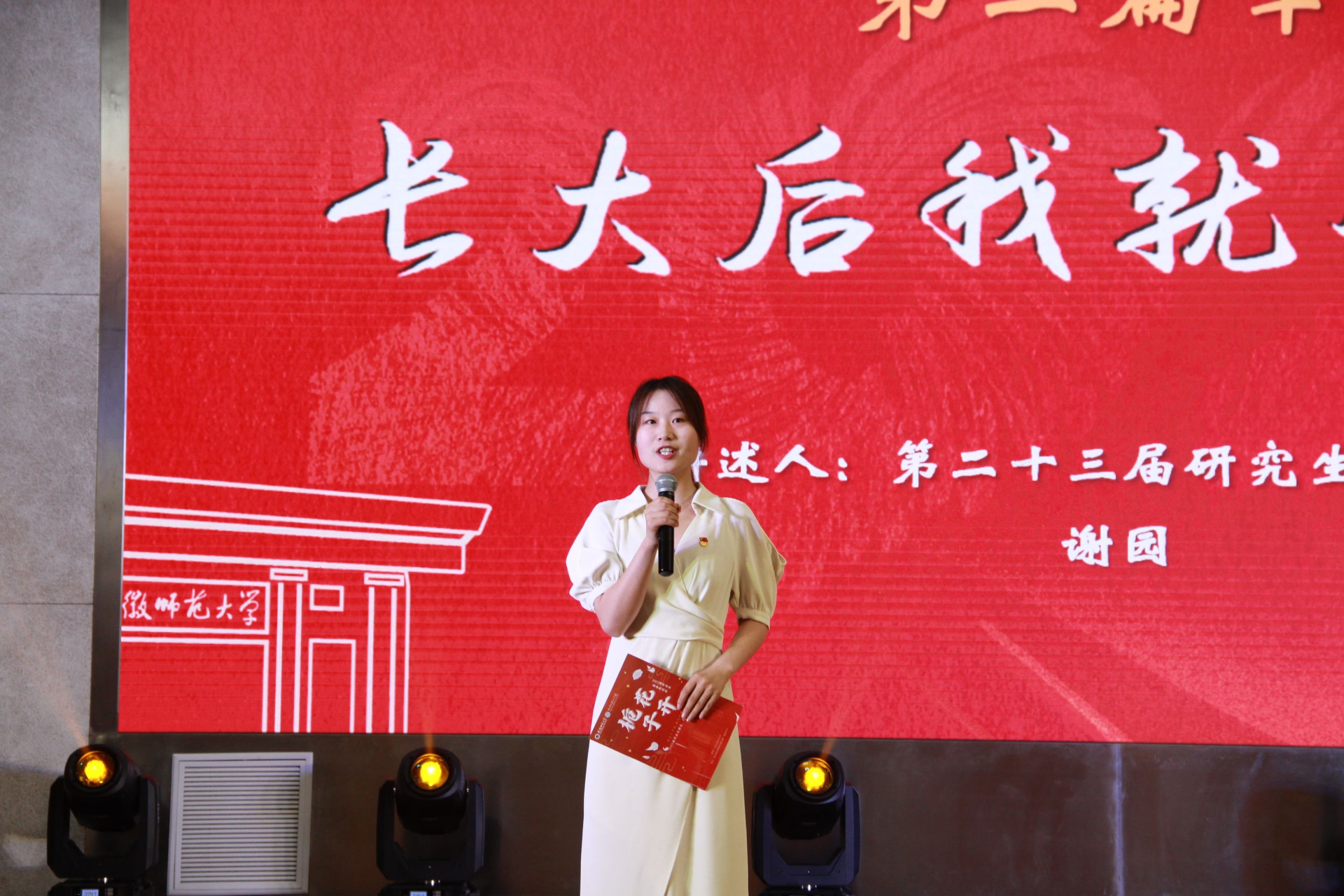 2020级地理学硕士研究生池建宇作为毕业研究生代表发言,他呼吁全体毕业生充实知识储备和提高专业素养,勇担时代责任,对所有毕业生致以最热烈的祝贺和最美好的祝愿。