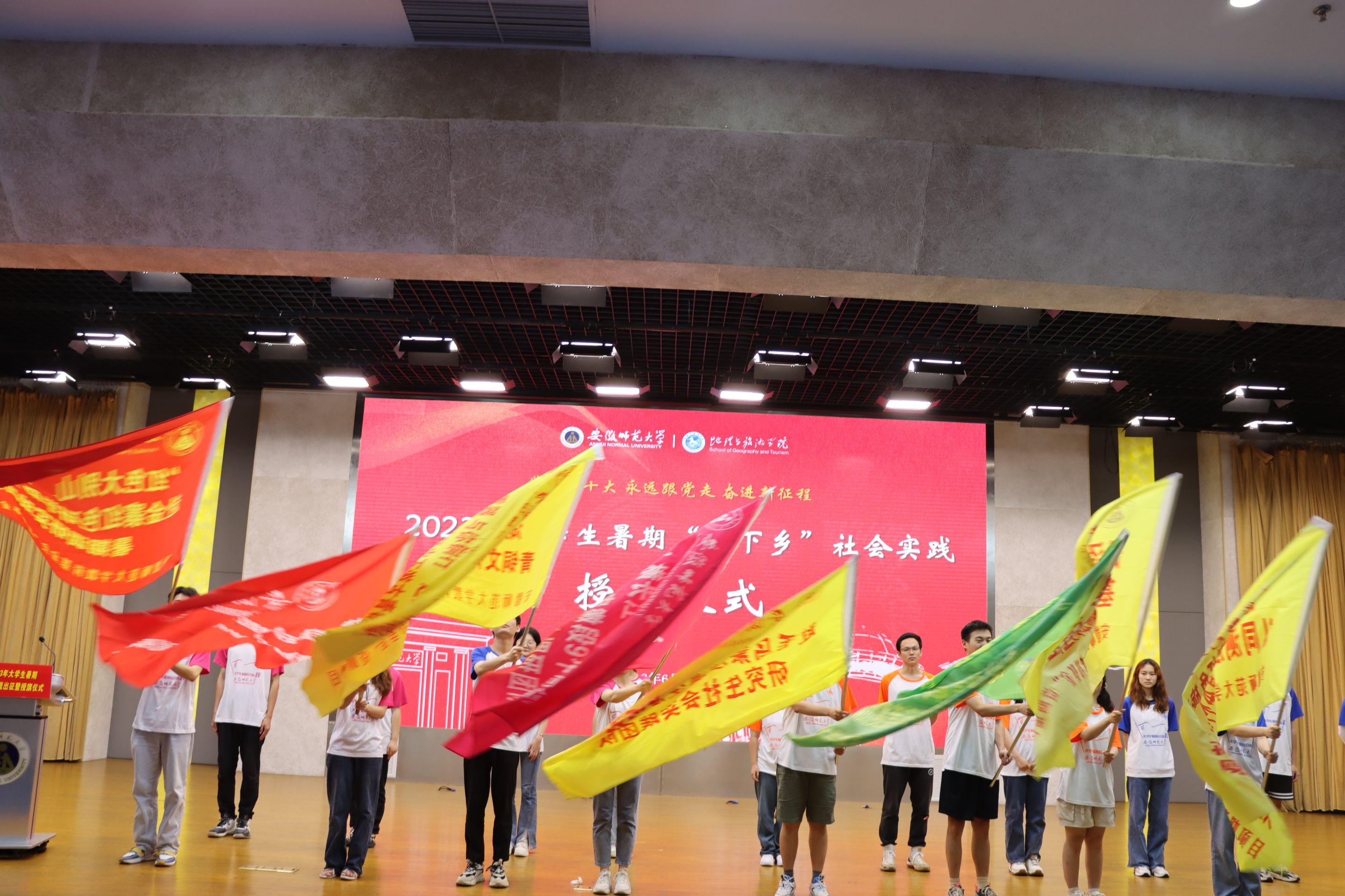 在庄严的国歌声中,暑期社会实践活动出征授旗仪式拉开帷幕。