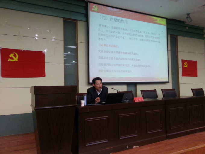 2014年4月19日,永利官网在实验楼101教室进行了学生党员教育培训班党课学习的第二讲,特别邀请了校党委组织部部长毕明福、副部长朱为民为学生党员授课。