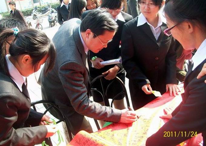 2011年是中国共产党九十华诞的喜庆之年,而11月24日又时逢“感恩节”。在这个特别的日子里,国旅学院旅游管理专业与物电学院自动化专业的大一新生,联合校爱心者协会、新长城自强社等,为了感恩党,感恩父母,感恩老师,感恩社会,营造知恩、感恩的校园文化氛围,开展了以“情满师大,感恩江城”为主题的一系列活动。校党委学工部部长余国升、校团委书记台启权、副书记邵登辉、国旅学院党委副书记罗振和两学院团学工作师生200余人参与活动。