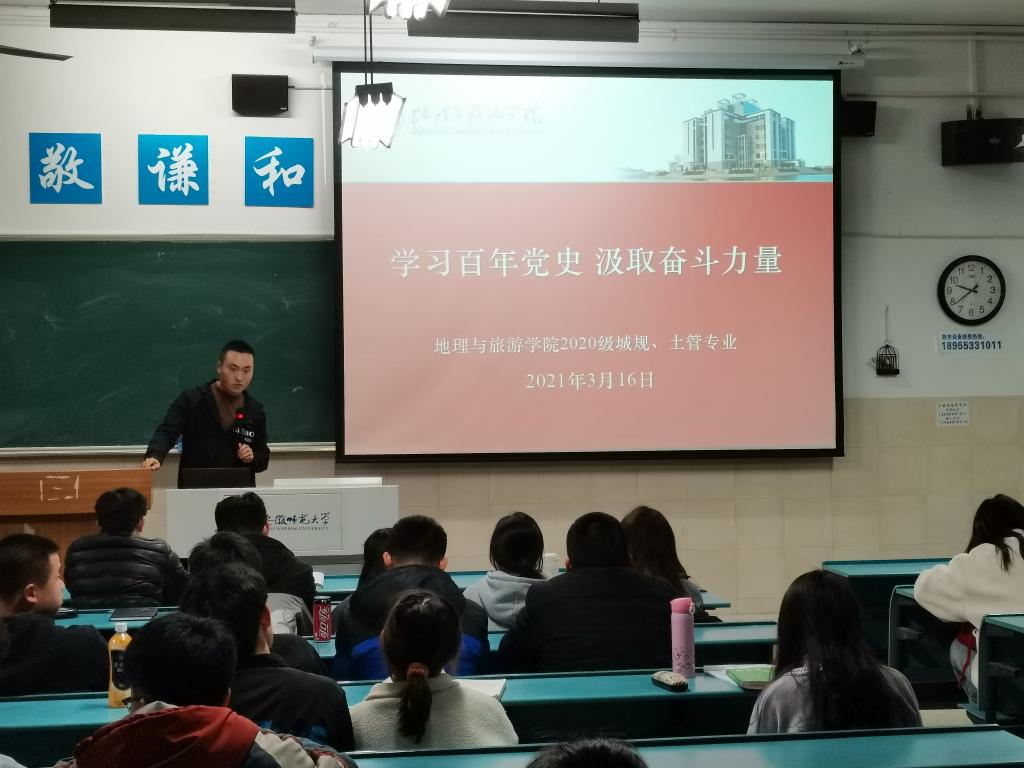 本网讯(地旅学院 刘少杰 陆峻然) 为贯彻落实习近平总书记在党史学习教育动员大会上的重要讲话精神,引领广大同学学史明理、学史增信、学史崇德、学史力行,2021年3月16日晚,20级土地资源管理、20级城乡规划开展党史学习主题教育。此次党史学习主题教育主要包括:党史学习主题班会,集体观看红色影视作品,团员分享党史学习心得。
