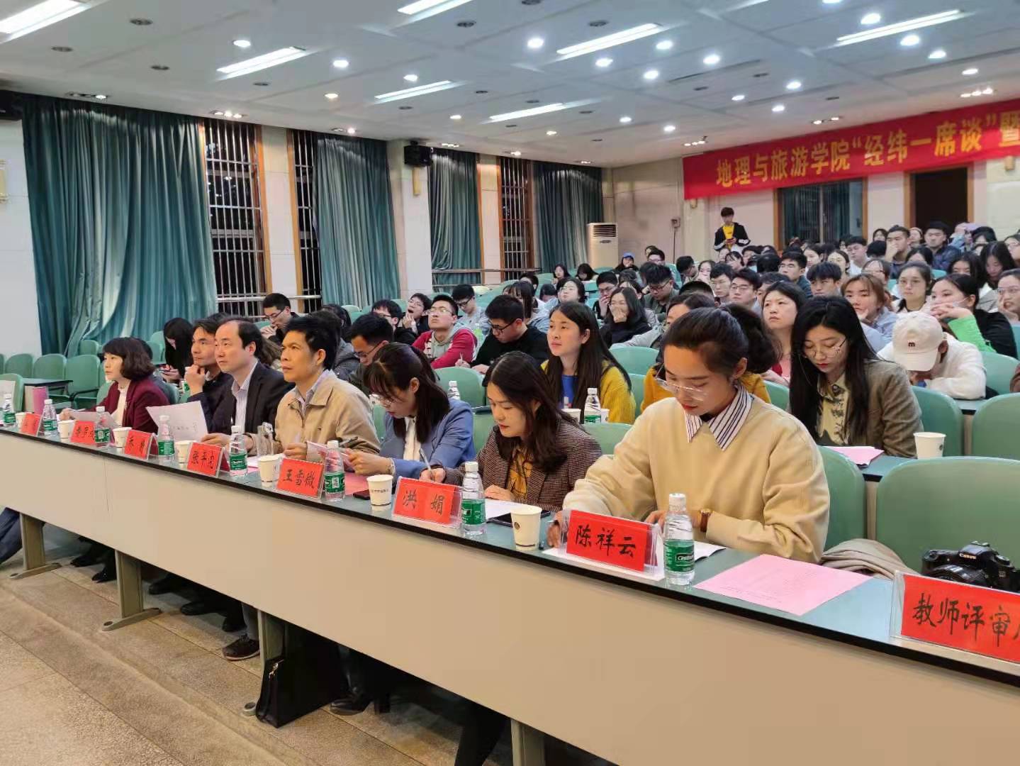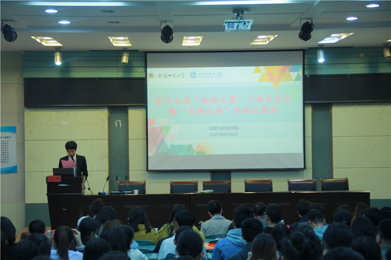 本网讯(地旅学院 陈祥云 朱曦 洪茹芊)为进一步提高优秀学生在群体中的榜样和标兵作用,4月6日晚,8858cc永利唯一官网第十七届“地旅之星”十佳大学生暨“自强之星”评选汇报会在地旅学院实验楼101报告厅举行。地旅学院党委副书记乔静,地理科学专业教授张平究,土地资源管理专业负责人费罗成,城乡规划专业副主任王雪微,酒店管理专业教师吴悦,旅游管理专业教师洪娟,地理信息科学专业教师姜伟,地旅学院团委书记陈祥云,以及全体辅导员出席活动并担任评委。此外,参与本次活动的还有由学院各班级学生代表、团委学生会骨干代表等组成的40人“评审团”学生代表,以及来自各班级的学生观众代表。