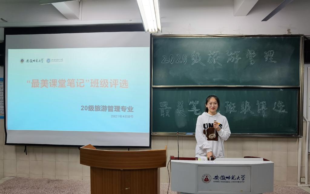 本网讯(地旅学院 赵佳慧 吴思慧 孙云峰)着手“跳动”字符,记录美好年华。为推动良好学风的养成,帮助同学们养成良好的学习习惯。48日晚, 2020级旅游管理专业开展在4号教学楼203教室组织开展“2020级旅游管理专业第二届最美笔记”评选活动。此次活动由班级学习委员徐晖主持,2020级旅游管理专业全体同学参与。