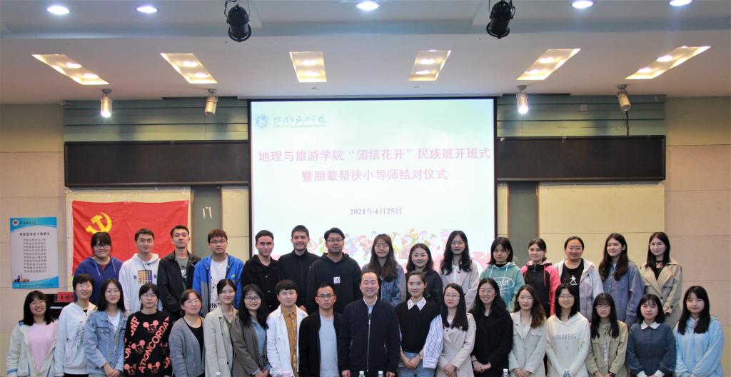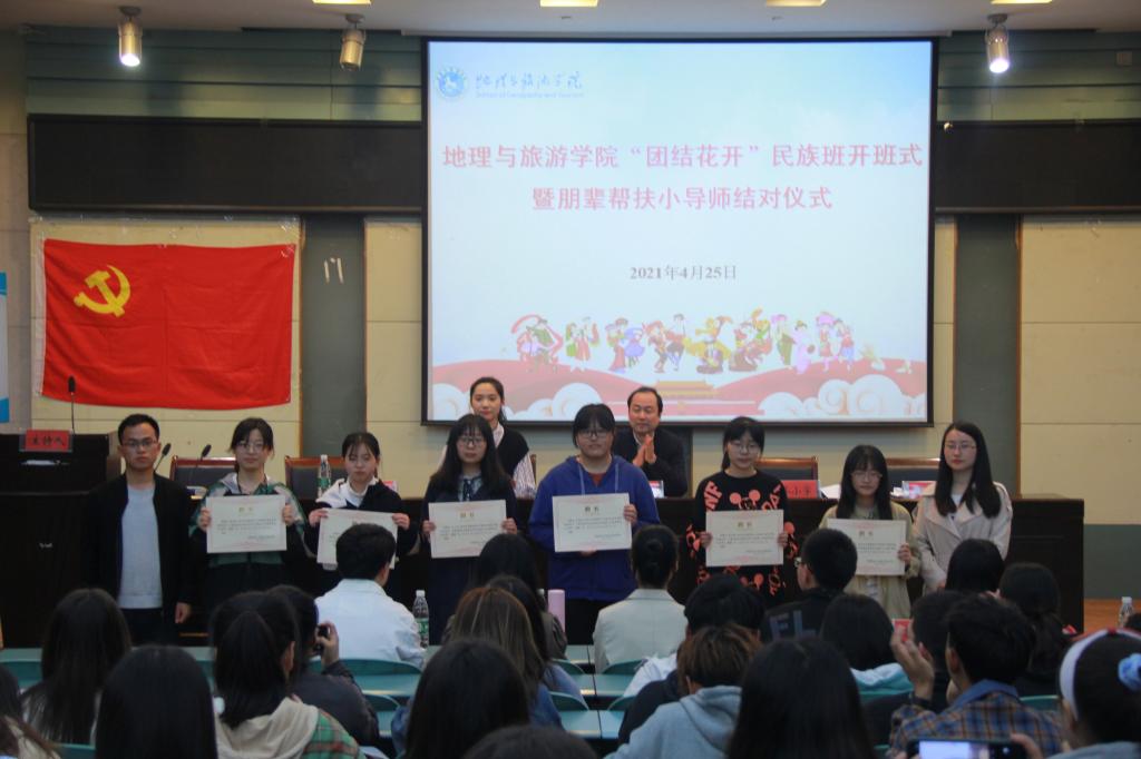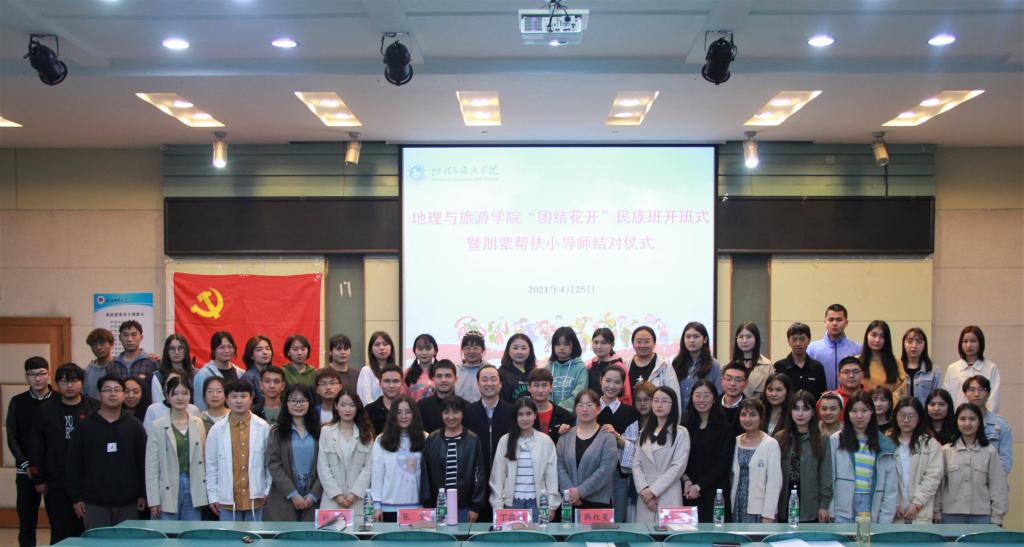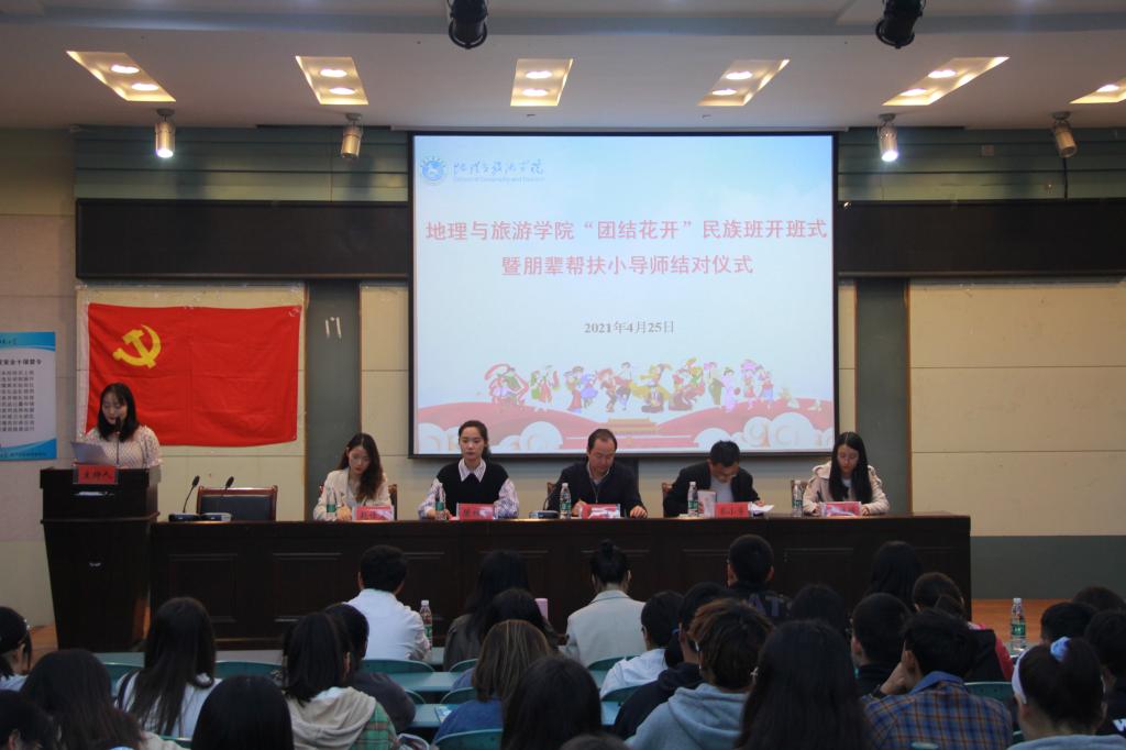 本网讯(地旅学院 赵佳慧 洪茹芊 高星月)为深入推进党史学习教育,切实贯彻全国高校思想政治工作会议精神,积极宣传党的民族政策,促进民族团结,铸牢中华民族共同体意识,进一步切实加强新疆西藏等少数民族学生教育管理服务工作,4月25日晚,8858cc永利唯一官网首期“团结花开”民族班开班式暨朋辈帮扶小导师结对仪式在院实验楼101举行。地旅学院党委副书记乔静、院团委书记陈祥云,辅导员代表、各民族学生、以及帮扶学生代表出席会议。开班仪式由丁梦瑶主持。