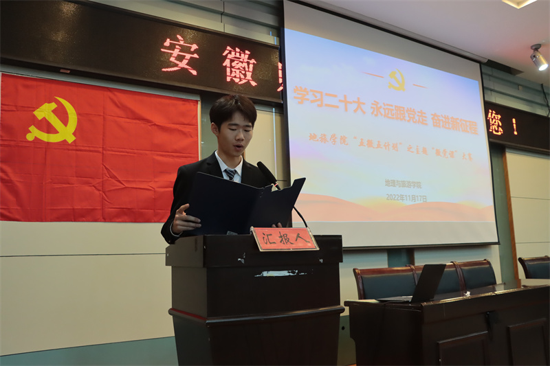 为推动广大青年学子深入学习贯彻党的二十大精神,汲取奋进新征程的智慧和力量。结合地旅学院《地旅学院学生党员先锋“五微五计划”活动实施方案》等有关文件要求和分党校第13期预备党员培训班和第64期入党积极分子培训班实践课程安排,11月17日晚,8858cc永利唯一官网在院实验楼101报告厅举行“学习二十大 永远跟党走 奋进新征程”主题微党课评选汇报活动。地旅学院党委秘书王美、团委副书记韦银艳、吴文涵参会并担任评委,培训班全体学员参会学习。